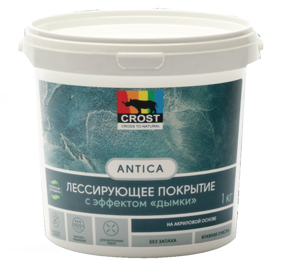Краска водоразбавляемая, на акриловой основе, полукроющая. Используется при внутренней отделке стен как тонкослойное финишное лессирующее покрытие, создающее декоративный эффект «облачности» и «под старину», для подчеркивания фактур декоративных материалов. Материал изготовлен на водной основе, не имеет запаха, абсолютно не токсичен, отличается высокой устойчивостью к различного рода воздействиям. Наносится как самостоятельный продукт на минеральные поверхности, так и в качестве финишного покрытия на фактуры из декоративных штукатурок. Цветовая гамма: белая основа + колеруется любыми органическими красителями по системе колеровки Crost, NCS, Ambiance.
