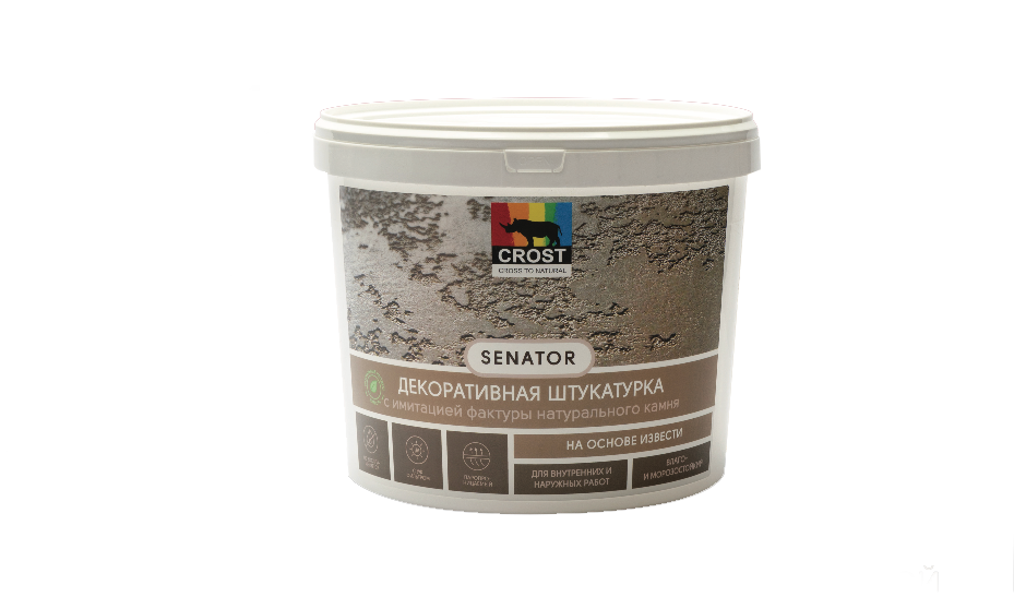 Штукатурка предназначена для наружных и внутренних работ, для декоративной отделки интерьеров и фасадов зданий, в том числе в регионах с частыми и интенсивными атмосферными осадками. Используется для отделки жилых помещений, холлов, стен вестибюлей, лестничных клеток, влажных помещений (подвалов, санузлов, ванных комнат). Образует прочное и долговечное покрытие. Создает неповторимый текстурный рисунок поверхности. Благодаря уникальному составу может имитировать множество фактур. Наносится на различные виды предварительно подготовленных минеральных поверхностей: на бетон, цементные и гипсовые штукатурки, гипсокартон. Выпускается в виде базы белого цвета и может колероваться по системе колеровки Crost в пастельные и темные цвета.