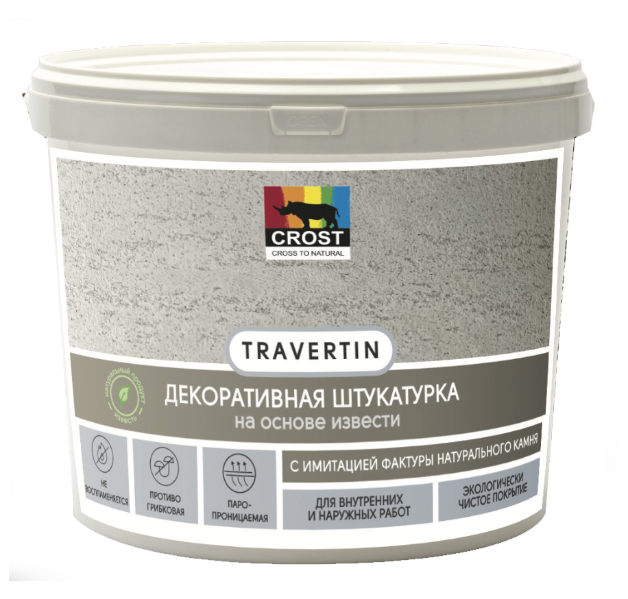 Работы следует проводить при температуре от +15 до +35С и влажности воздуха не более 80%. Не наносить в ветреную погоду и под прямыми солнечными лучами. При работе следует использовать инструменты из нержавеющих материалов. Подготовка поверхности должна соответствовать стандарту К2 (К3)по Таблице 7.5 СП 71.13330.2017. Поверхность должна быть сухой, ровной, прочной, очищенной от пыли, высолов, жиров, известкового налета и других загрязнений. Новые цементные поверхности должны быть выдержаны в течение 30 дней. По необходимости выровнять поверхность c помощью финишной шпаклевки. Для лучшей адгезии рекомендуется обработать основание грунтом Crost® Primer (высыхает за 3-5 часов). Перед применением штукатурку тщательно перемешать. Crost® Travertin наносится на поверхность в один cлой при помощи инструментов из нержавеющей стали: шпателя или кельмы. Слой штукатурки наносится всплошную и слегка растирается. Через 5-10 минут (в зависимости от температуры и влажности окружающей среды) боковой кромкой кельмы делаются локальные продиры. После полного высыхания в качестве защитного покрытия нанести гидрофобизатор Crost® Wax Protective или финишный декоративный лак с перламутровым эффектом Crost® Shine, либо использовать материалы с декоративным эффектом: Crost® Lasur, Crost® Perlato, Crost® Oreol.